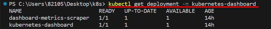 kubectl get deployment -n kubernetes-dashboard