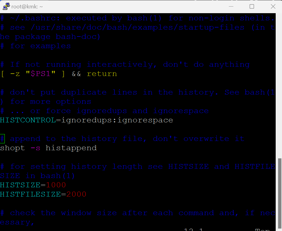 ( 위에 사진은 아무것도 설정하지 않은 .bashrc 파일인데 주석이 파란색으로 되어 있어서 잘 안보이고 행 번호 표시가 잘 안되어 있어서 불편하더라고요..ㅠㅠ )