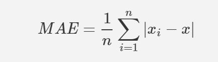 - 평균 절대 오차 ( MAE ) - 정답과 예측 차이에 대한 절대값의 평균