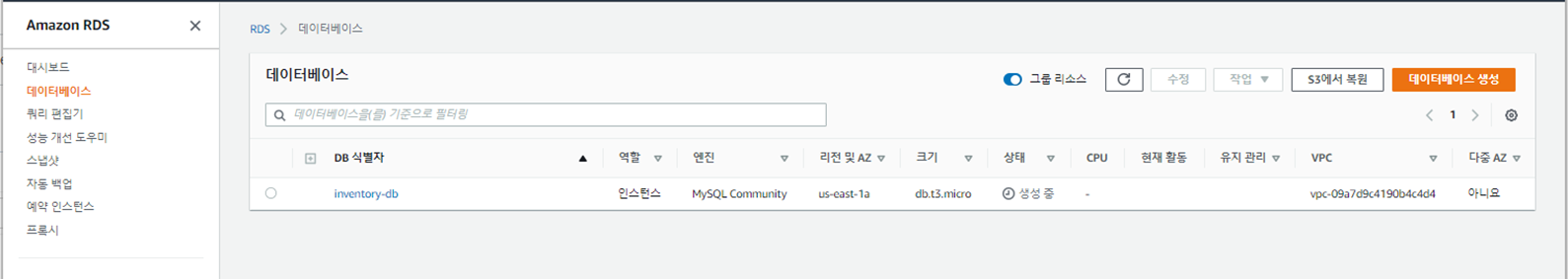 1. RDS Database 만들기