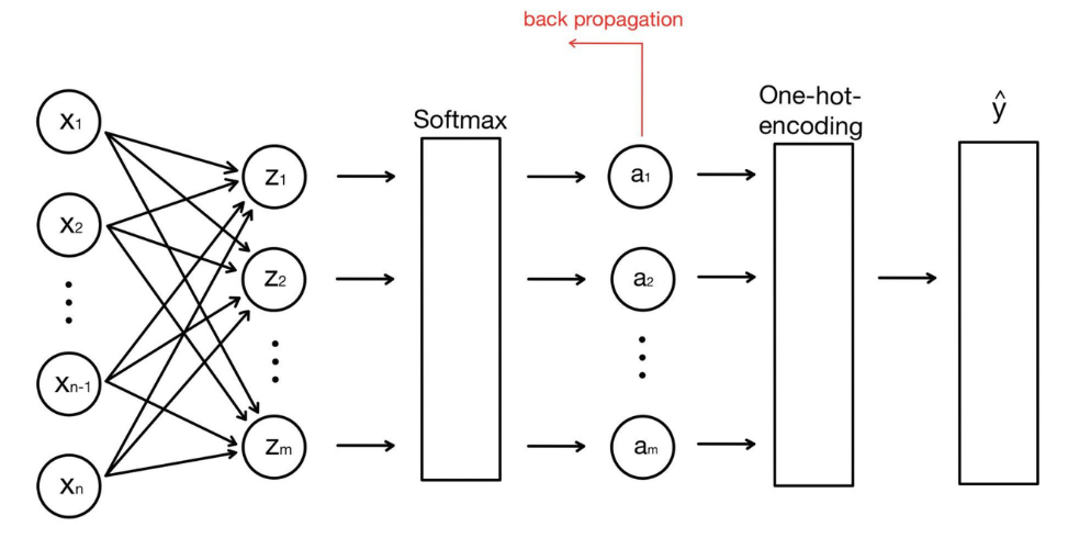 - 타깃의 종류가 여러 개이기 때문에 출력 값도 여러개 , 각 각의 출력값은 타깃과 매칭될 확률