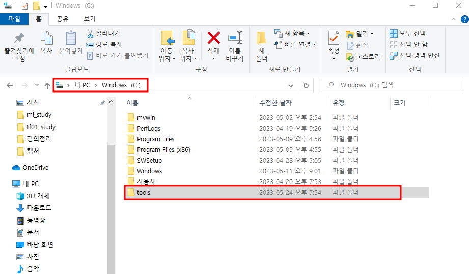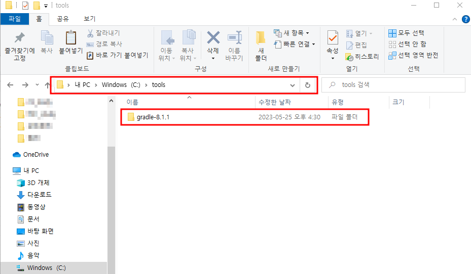 [ C:\tools ] 파일 생성 후 그 안에 다운받은 Gradle 압축 해제