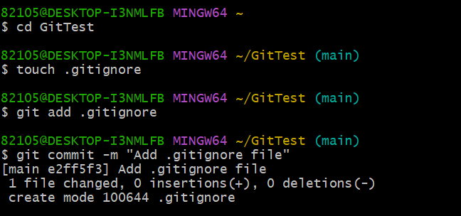git commit -m "Add .gitignore file"