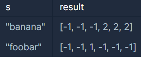 b는 처음 나왔기 때문에 자신의 앞에 같은 글자가 없습니다. 이는 -1로 표현합니다.
