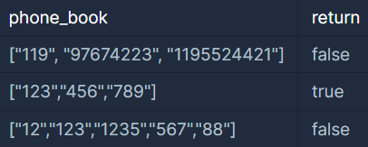 전화번호부에 적힌 전화번호를 담은 배열 phone_book 이 solution 함수의 매개변수로 주어질 때, 어떤 번호가 다른 번호의 접두어인 경우가 있으면 false를 그렇지 않으면 true를 return 하도록 solution 함수를 작성해주세요.