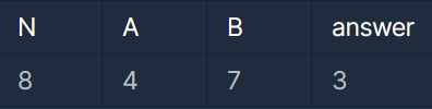 public int solution(int n, int a, int b)