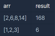 두 수의 최소공배수(Least Common Multiple)란 입력된 두 수의 배수 중 공통이 되는 가장 작은 숫자를 의미합니다. 예를 들어 2와 7의 최소공배수는 14가 됩니다. 정의를 확장해서, n개의 수의 최소공배수는 n 개의 수들의 배수 중 공통이 되는 가장 작은 숫자가 됩니다. n개의 숫자를 담은 배열 arr이 입력되었을 때 이 수들의 최소공배수를 반환하는 함수, solution을 완성해 주세요.